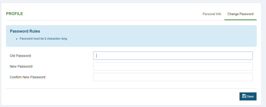 - Click Change Password in the upper right corner of the Profile panel.